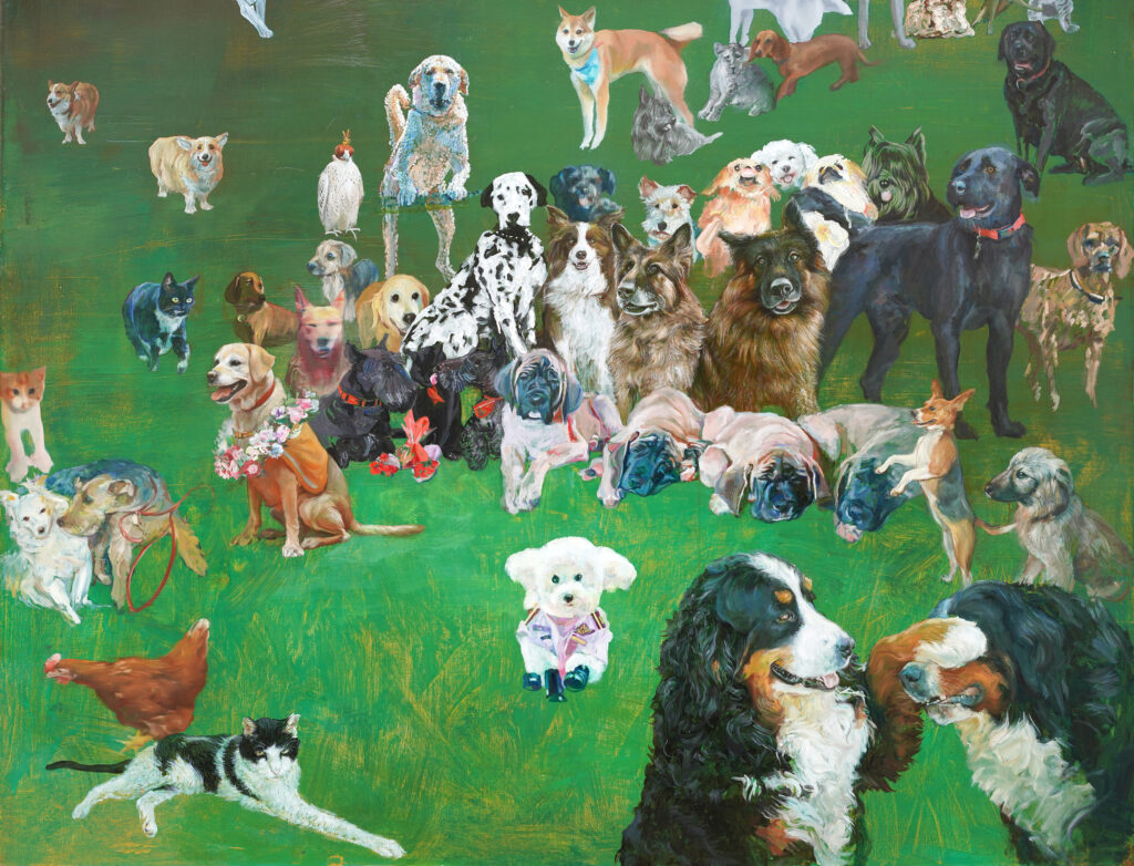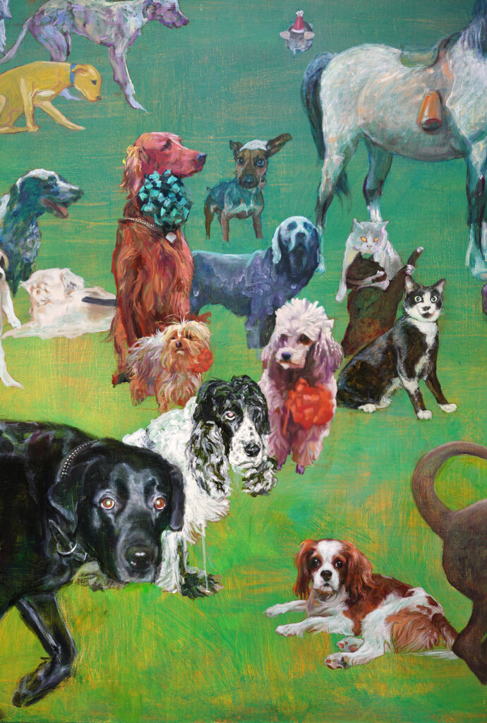Un triptyque rassemblant les animaux de compagnie de dirigeants politiques de différents pays.